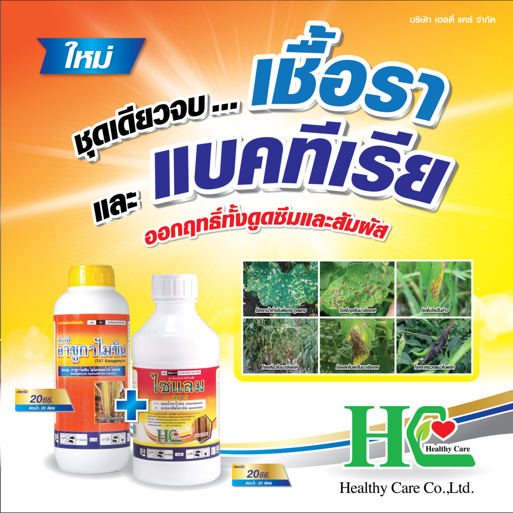 ประโยชน์ : ป้องกันกำจัดโรคแอนแทรคโนส โรคใบไหม้ โรคราน้ำค้าง โรคใบจุด โรคราสนิม โรคกาบใบแห้ง โรคเน่าคอรวง โรคเมล็ดด่าง
